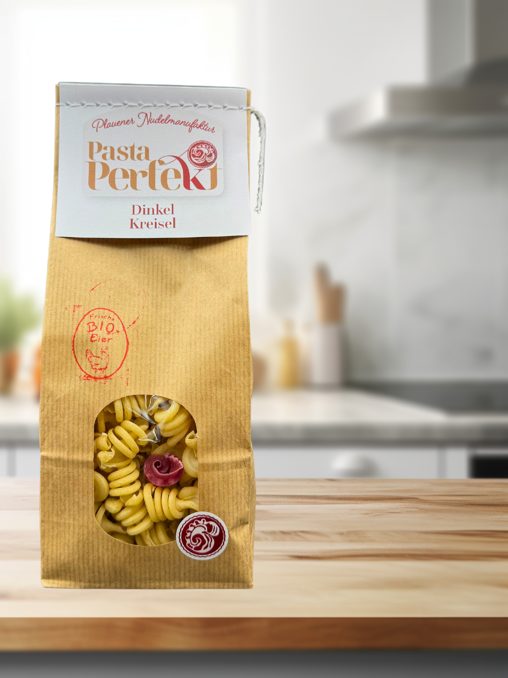 Zutaten: 70% Dinkelgrieß, 30 % Dinkelmehl, 15% Bio - Frischei, Trinkwasser